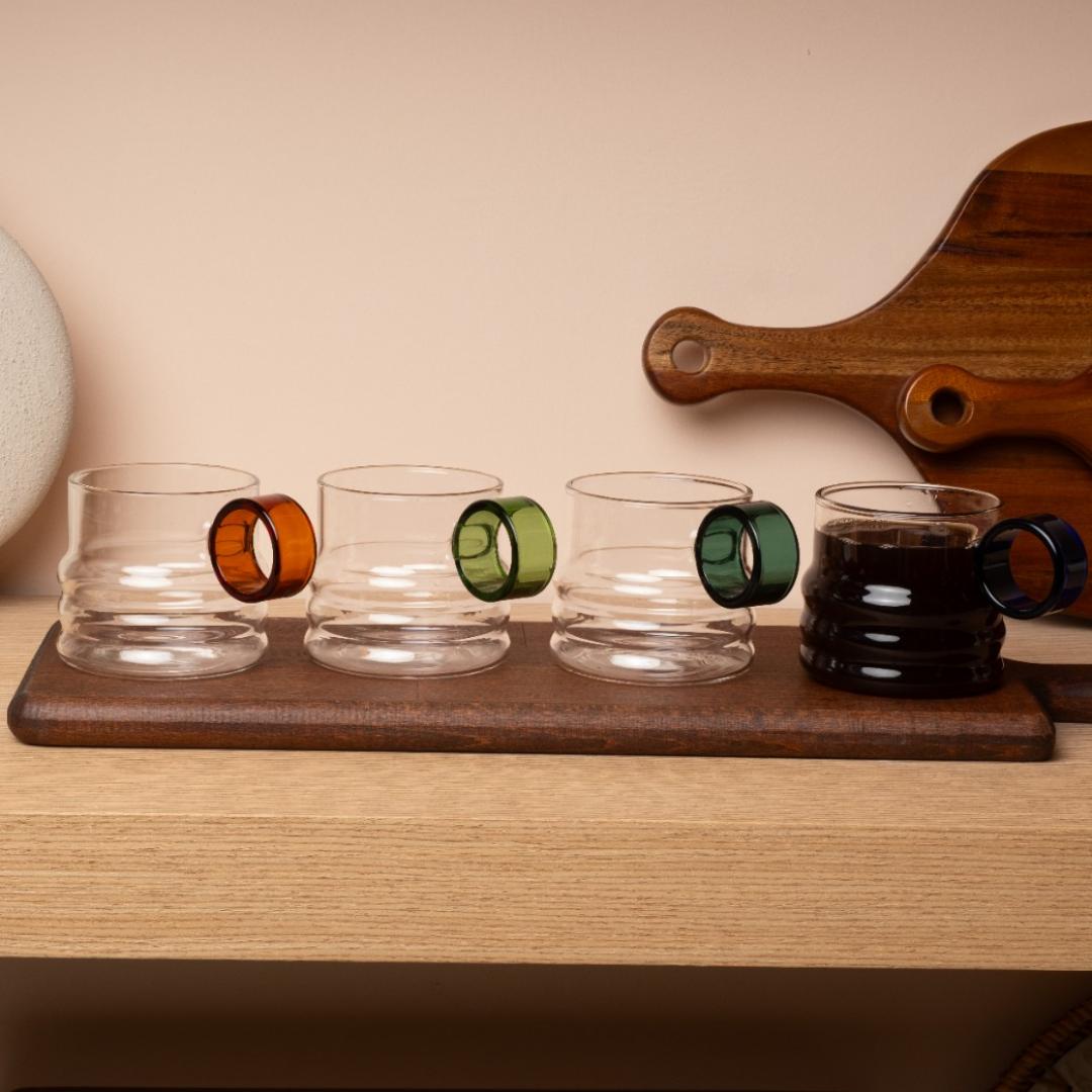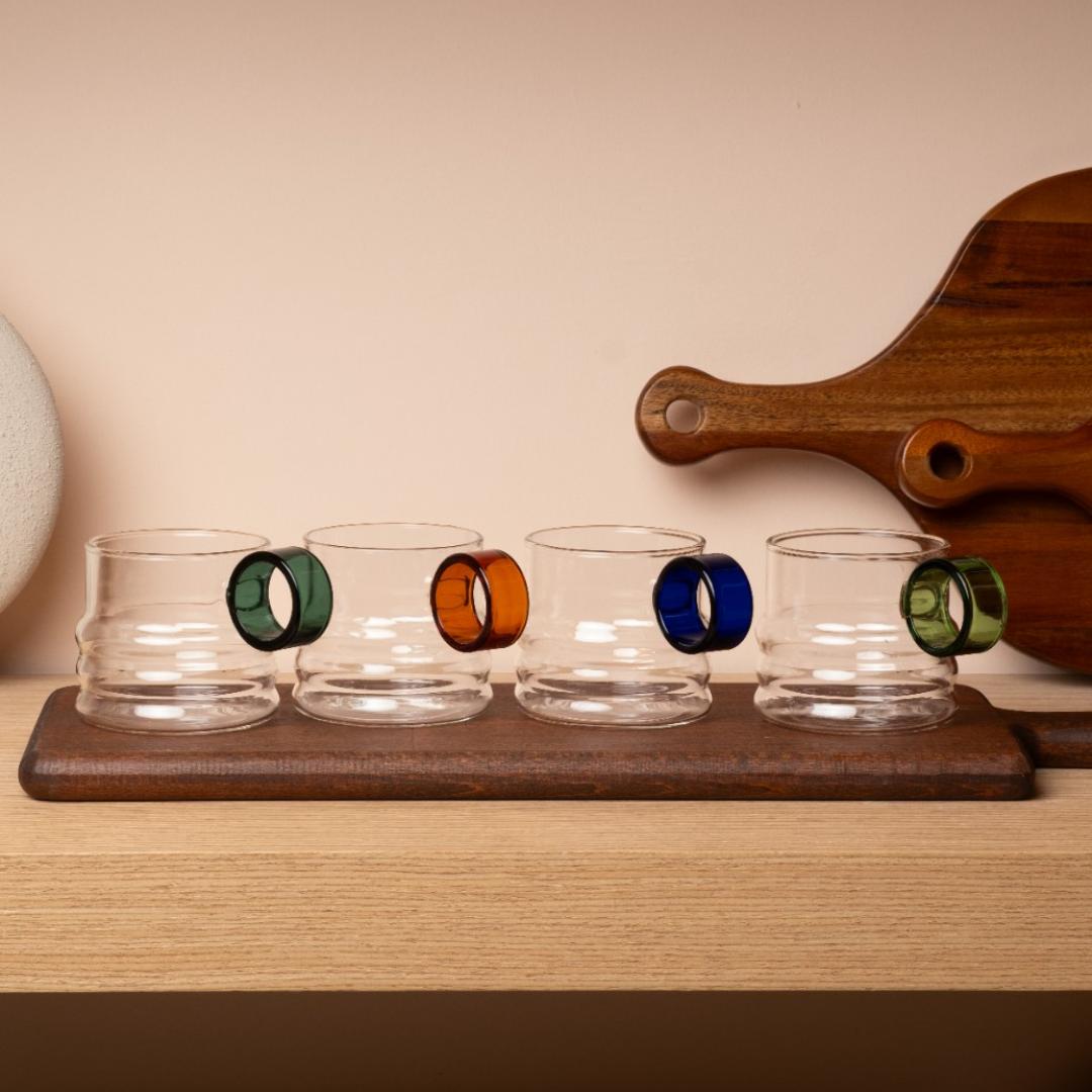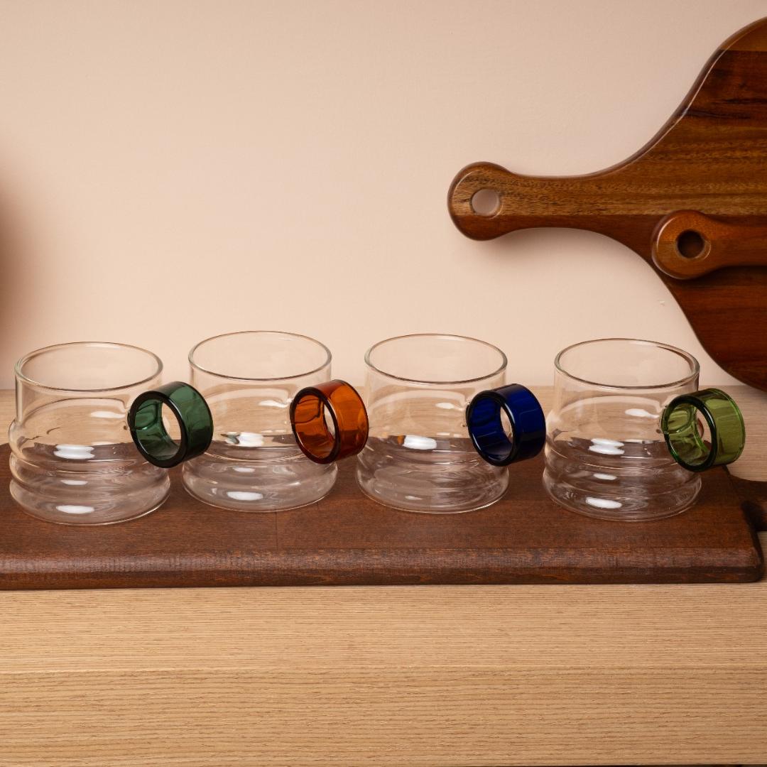Renkli Halka Detaylı Şık Bardak Seti 4'lü