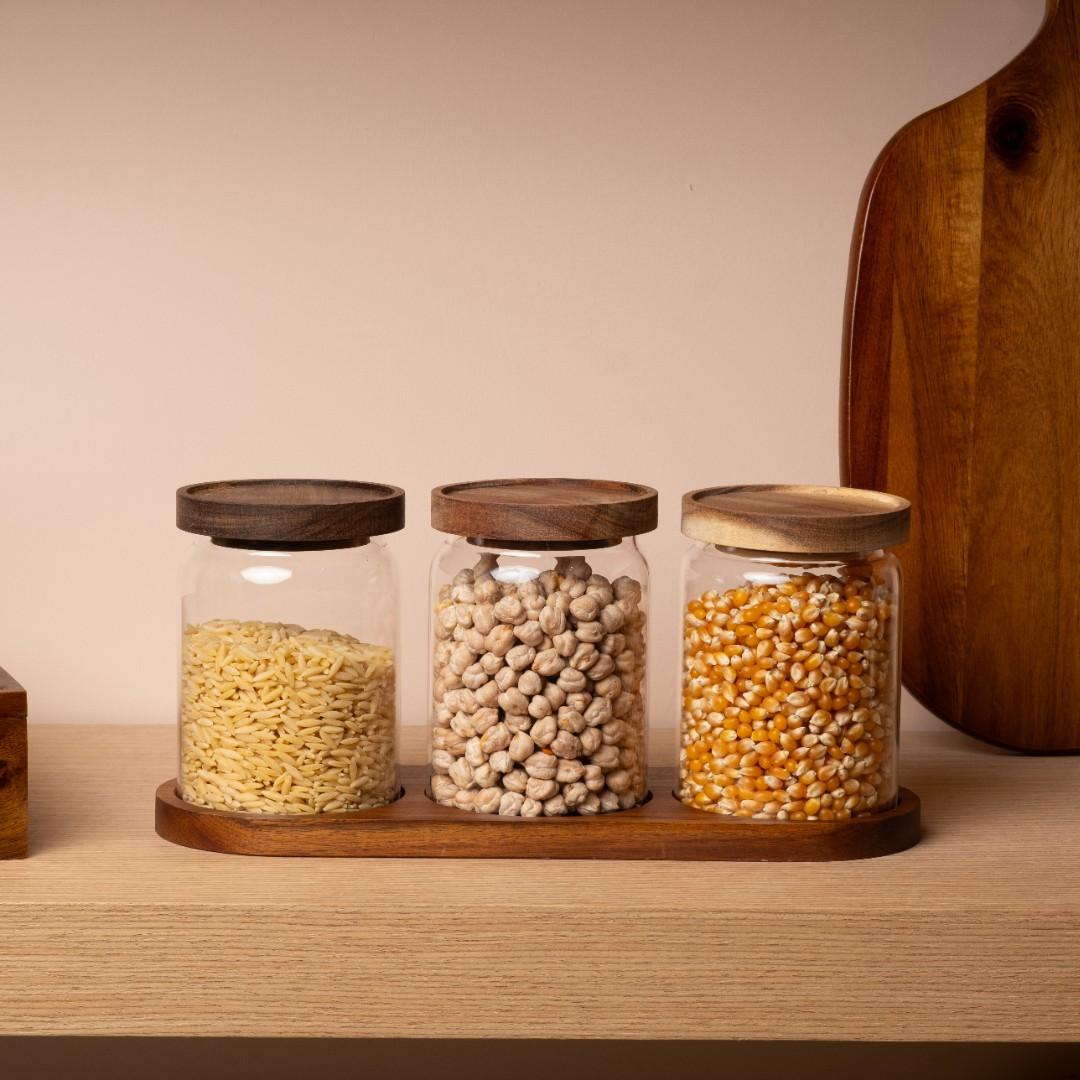 •Mutfaklarınıza düzen ve şıklık katacak Akasya Kapaklı ve Standlı 3’lü Cam Saklama Kabı Seti ile tanışın!