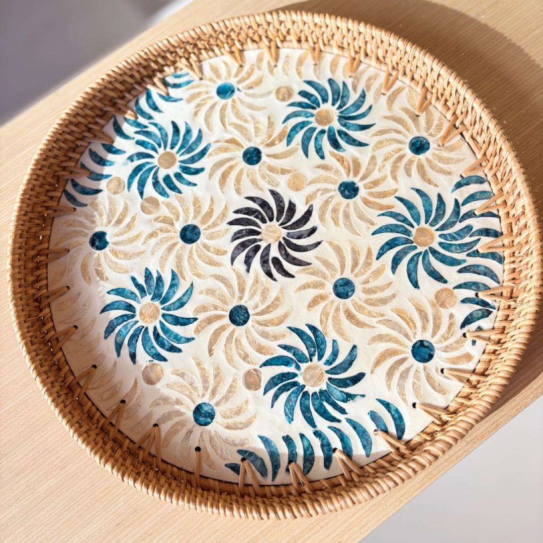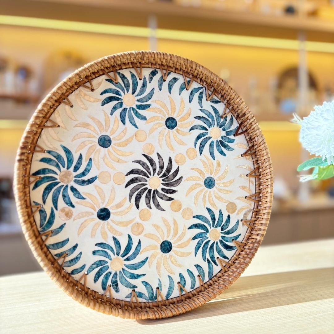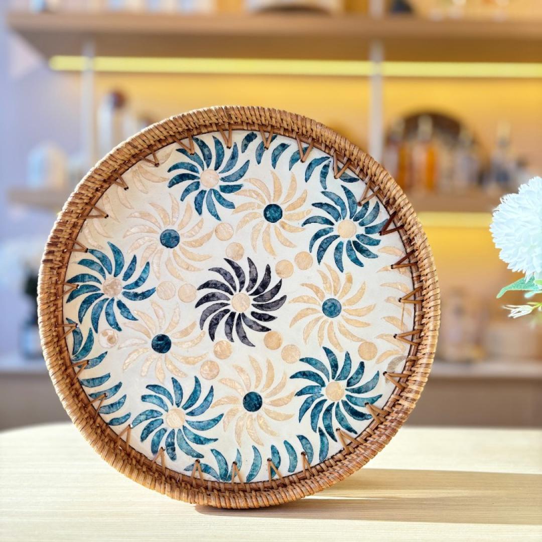 Sedefli Yuvarlak Tepsi Büyük Boy