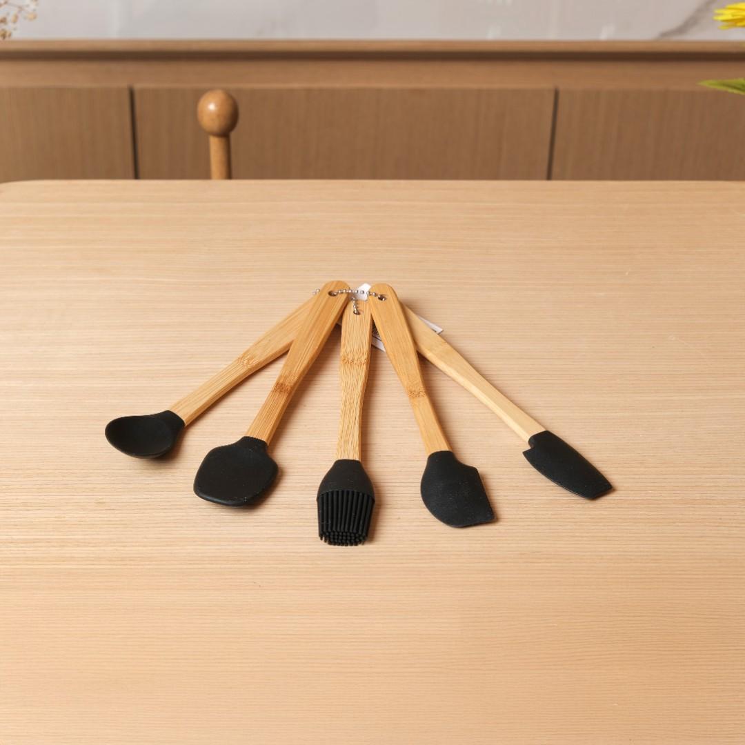 Bambu Saplı 5'li Silikon Kaşık Seti Siyah