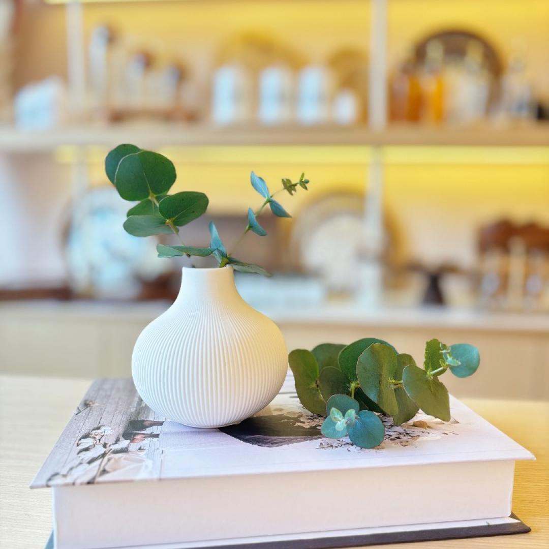 El işçiliği ile üretilen bu özel tasarım seramik vazo, doğal malzemelerden elde edilmiştir. Oluklu yüzeyi, ışığı farklı açılardan yansıtarak mekânınıza derinlik katar. Vazoya yerleştireceğiniz kuru çiçekler veya yeşillikler ile evinizde doğal bir atmosfer yaratabilirsiniz.
